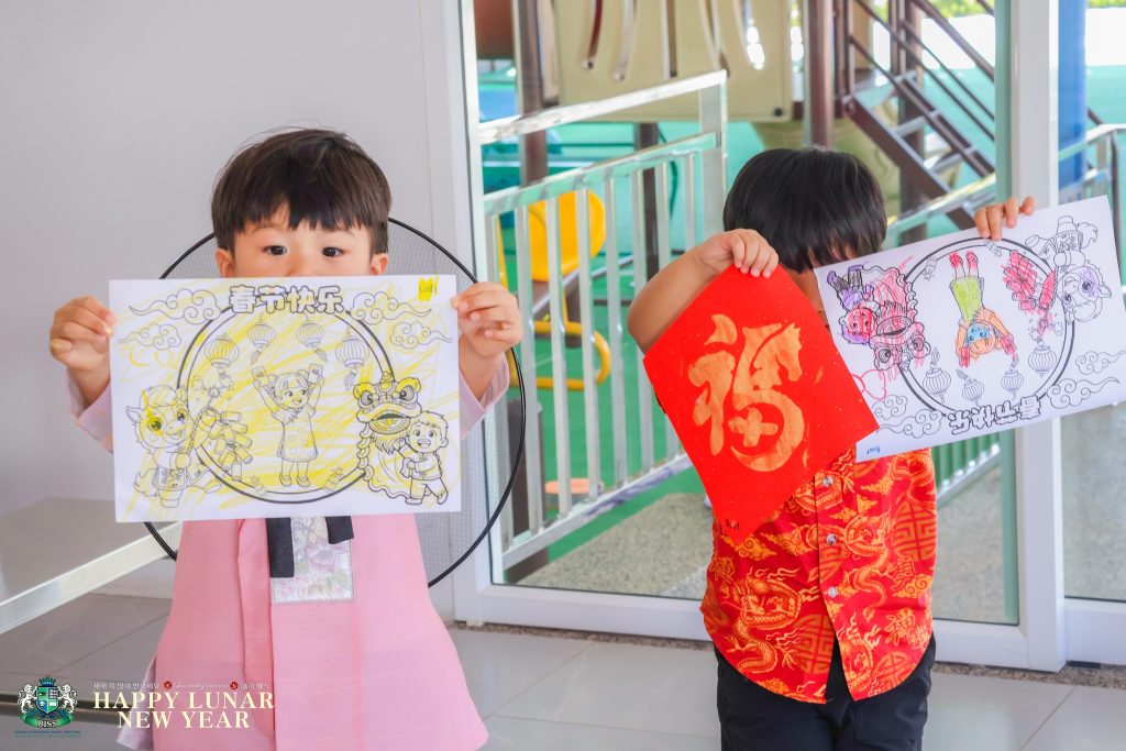 เทศกาล Lunar New Year 2026 ปีมะเมีย เต็มไปด้วยความสนุกสนานและความอบอุ่น นักเรียนทุกคนร่วมกันแต่งกายตามเทศกาล ด้วยชุดประจำชาติเกาหลี เวียดนาม และจีน ในโทนสีแดง สีทอง และสีสันอื่น ๆ ที่โดดเด่น สดใส สวยงาม เข้ากับบรรยากาศของกิจกรรม