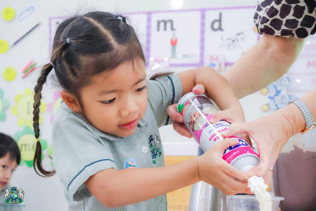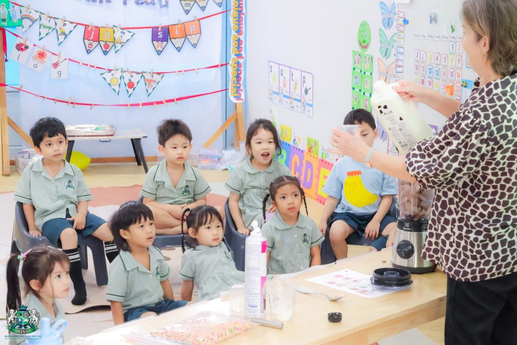 แรงบันดาลใจจากบทกลอนเรื่อง “Chocolate Milkshake” นักเรียนระดับชั้น Reception ได้ฝึกทักษะการท่องบทกลอน การลงมือทำเครื่องดื่มแสนพิเศษซึ่งช่วยให้นักเรียนได้พัฒนาทักษะคณิตศาสตร์ และกล้ามเนื้อมือ ผ่านการตวง การเทส่วนผสม การฟังเสียงเครื่องปั่นและการสังเกตทุกขั้นตอนด้วยความตื่นเต้น